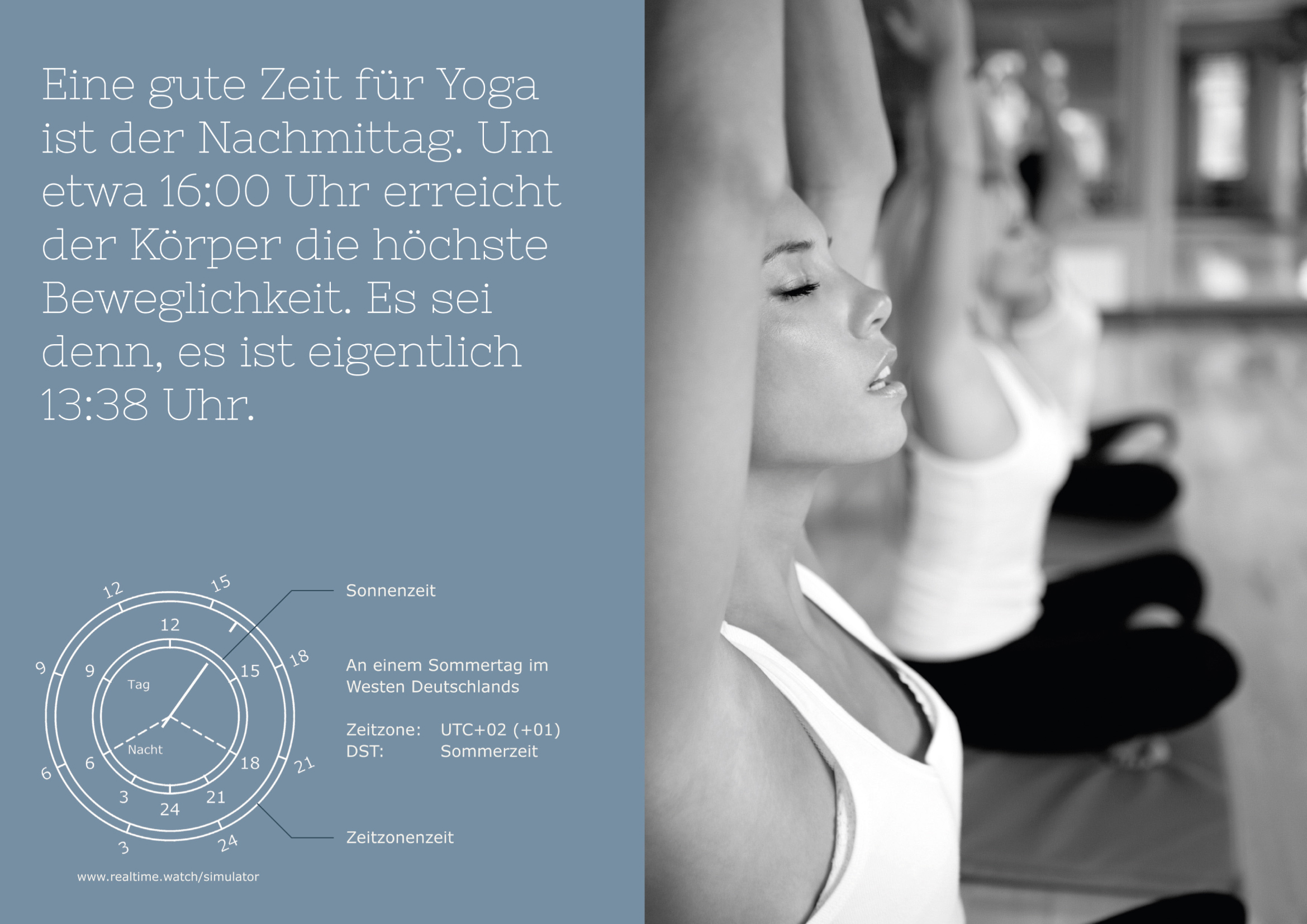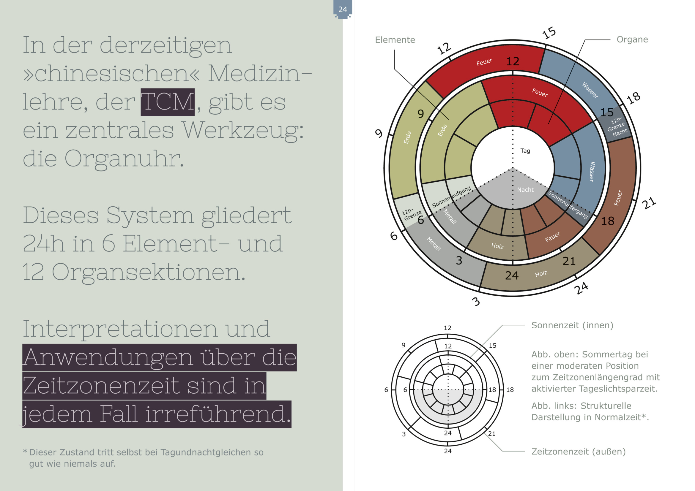 In den modernen Chronowissenschaften (Chronobiologie; Biologische Rhythmen, Innere Uhr, Circadiane Rhythmen, Zeitgeber) ist es inzwischen unumstritten, dass der Lauf der Sonne, die Dynamik von Tag und Nacht eine entscheidende Wirkung auf alle vitalen Prozesse dieser Welt haben. Die tatsächlichen Sonnenzeit kann jedoch von unserer »normalen« Zeit erheblich abweichen. Tageszeitbezogene wissenschaftliche Daten werden oft noch auf Basis der »normalen« Zeitzonenzeit erhoben, publiziert und angewand. Insbesondere in der Pharmakologie kann dies zu unerwünschten Konsequenzen führen. Um diese Diskrepanz zwischen Zeitzonenzeit und Sonnenzeit aufzulösen, sollten wir beide Zeiten – gemäß ihrer Wesenheiten miteinander verwenden!
